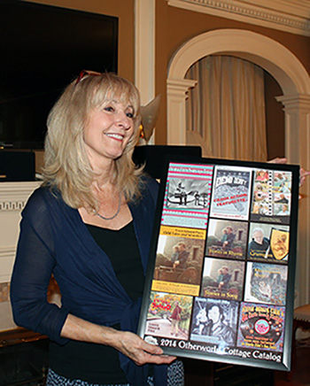 (Left) Linda displays her 2014 Otherworld Cottage Catalog Poster. |