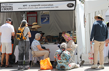 The Festival of Books was a huge affaisr, but the NPF booth was nowhere near center stage and foot traffic was either loaded down and leaving, or hurrying in to the central marketplace to see what was being offered there. But it was a lesson learned for those of us who'd never exhibited at a book fair before.
