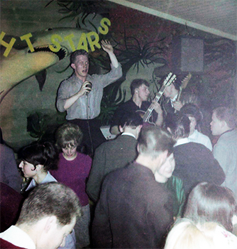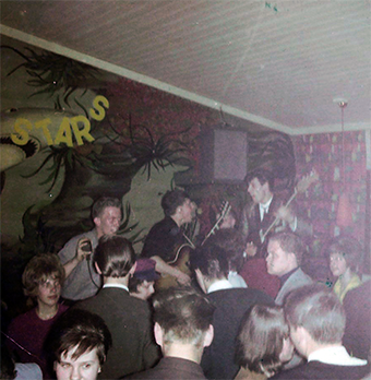 The Koralle had a low ceiling and no stage. The band was elevated slightly by a single riser podium that barely separated them from the dense crowd of dancers, and left no room for the "Twistsensation" to twist, but he could leap, if he was careful, and when he did, he could see and be seen by the folks not dancing, but sitting, watching and listening at the tables at the back of the room.Crowded as they were, this wasn't a Boston crowd. No gangs were there, or if they were, they hadn't come to rumble, and to Travis' delight, no fights broke out. The room was full of well-behaved people. In all, it turned out to be a great gig! |