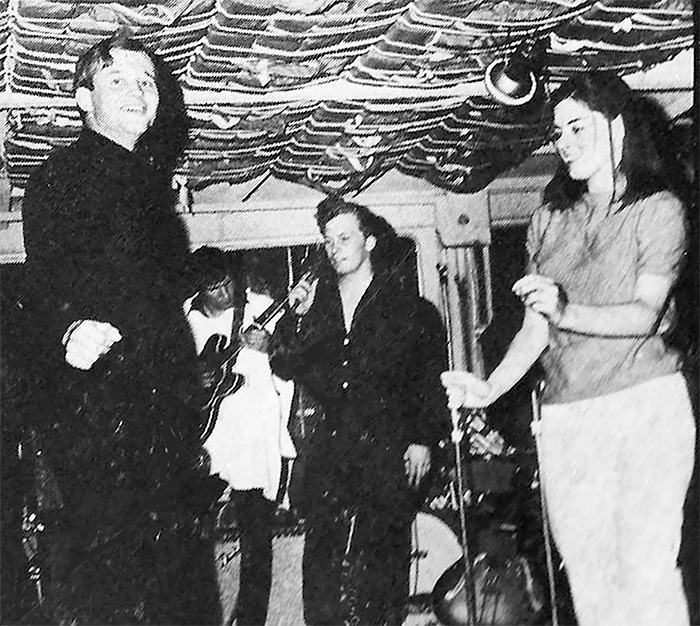 This is the only photo we've found of Travis Pike and the Boston Massacre. The photo was taken on the WRKO Harbor Cruise and appeared on the inside cover of the 30 NOW GOLDENS 30 double LP album produced by Buzz Curtis for WRKO. We believe that the man dancing in the foreground may be one of the radio station's Deejays, and his unidentified partner certainly has a lovely smile. We do know that the singer in the center is Travis, and the intense guitarist to his right is George Brox, wearing one of the WRKO panchos celebrating the event. Phil (Drums), Mikey Joe, (Bass), and Karl, (lead guitar), are not in the shot but this may be the only surviving photo of Travis Pike and the Boston Massacre in performance. The seven demos we'd recorded at Lightfoot Studios was getting us bookings, but we didn't have a recording contract yet, so although we are in a photo on the inside cover, you none of our songs are on the album, but if you click Travis Edward Pike's Tea Party Snack Platter, fresh recording os songs once performed by Travis Pike's Tea Partyyou may listen to a number of the songs we played on that cruise. |