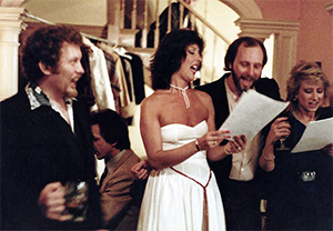 The same musical gang as above, except for David's lady friend, Pamela (extreme left), and actress Susan Allison, (extreme right). |