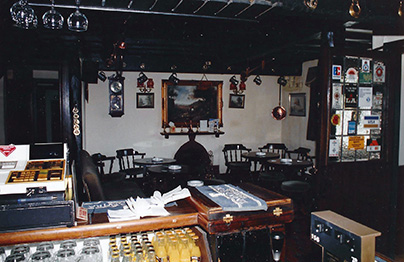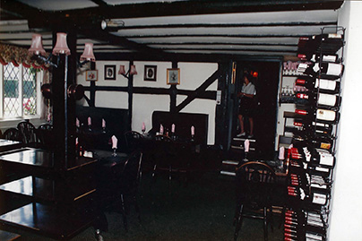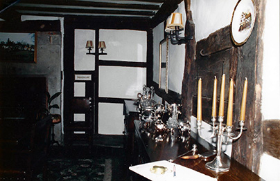 These photos were taken with permission in 1992 at the Green Dragon Inn, Sambourne, Warwickshire, England. It would be difficult to make it look like the ficticious Morningstone in its real-world surroundings, and the pub interior will likely be built on a sound stage, but these interior photos will certainly be appreciated by a set designer. It is here that Morgen hears Laura sing "Morningstone" in a film for a local heritage class. |