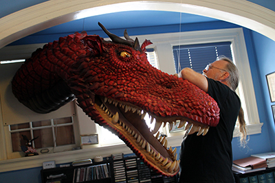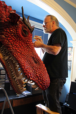 Travis Edward Pike's Long-Grin Saga 2014: This was one of those rare occasions where the operation was considerably more dangerous for the surgeon than it was for the patient. It takes a lot to knock out a dragon, but he won't be out for long! Since the eyes must be made to move and focus together, Billy had to try to do both at once, and if Long-Grin awoke before the operation was complete, there was no saying what might happen! |